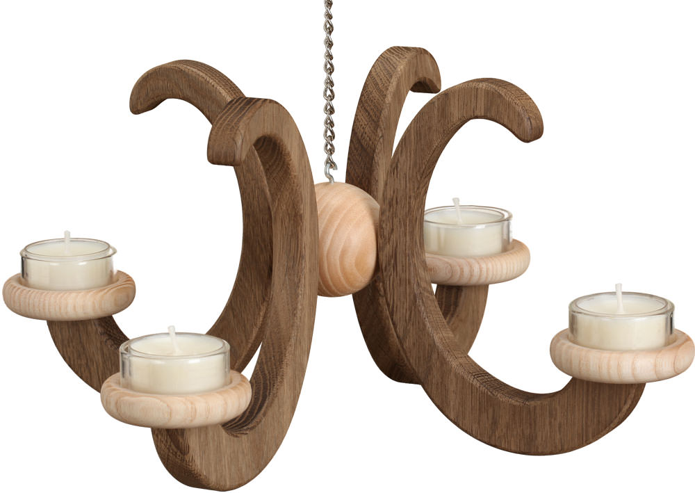 The article: This is a Ceiling candlestick, oak naturally smoked. Quantity: one Ceiling candlestick Height: 16 cm Diameter: 33 cm The manufacturer: The Seiffener Volkskunst eG was founded in 1958. Since this time it deals with the production of traditional wooden art products. The main focus is the figurative representation and production. Accordingly traditional nutcrackers, smoked figures, light figures etc. as well as numerous miniature representations count to the assortment. But also with some newer collections the company could achieve first prizes in design competitions. A list of all articles of the manufacturer can be found here: --Click--
